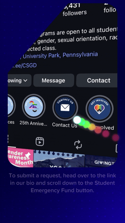 One of the more in depth motion design projects I completed was the Student Emergency Fund informational video. I wrote all of the copy, animated all of the visuals/text, sourced and implemented CC0 music/sound effects, and even did the voice over (yes, that is my voice!). Check out the video below!