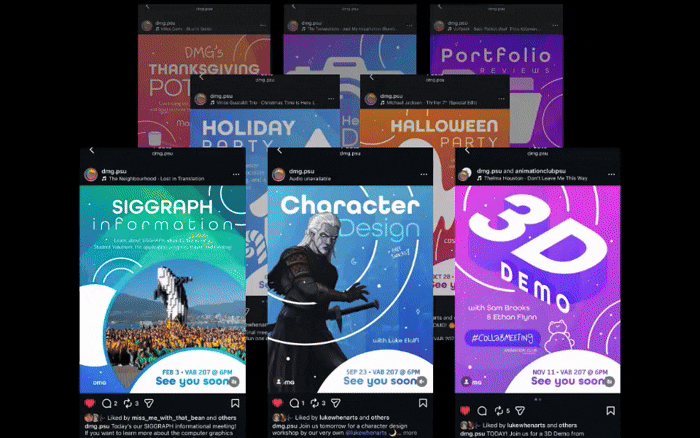 Digital Media Group (DMG) is a collective of digital artists dedicated to community building and professional development. We’re committed to helping those interested in a career in digital media find opportunities and make meaningful connections. Our members consist of illustrators, graphic designers, concept artists, 3D modelers, animators, and more! DMG is a place where digital artists work together to explore our rapidly expanding industries.