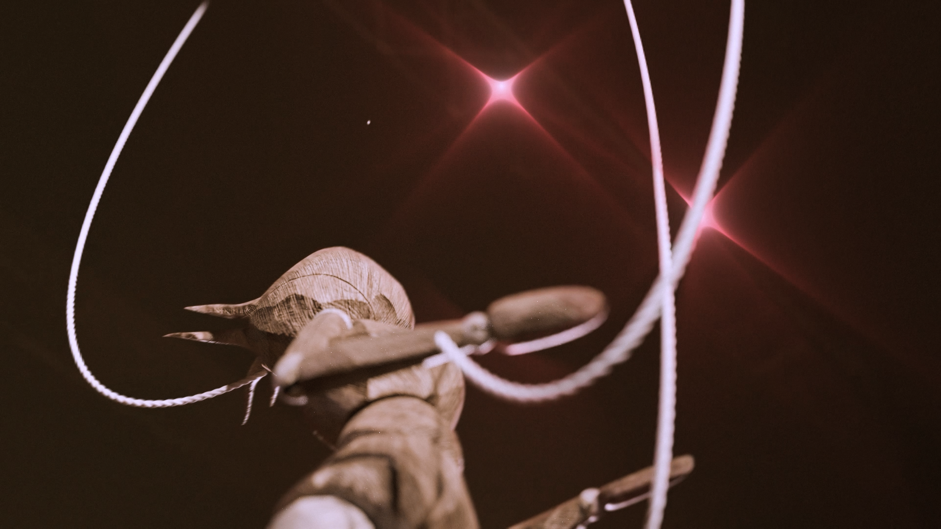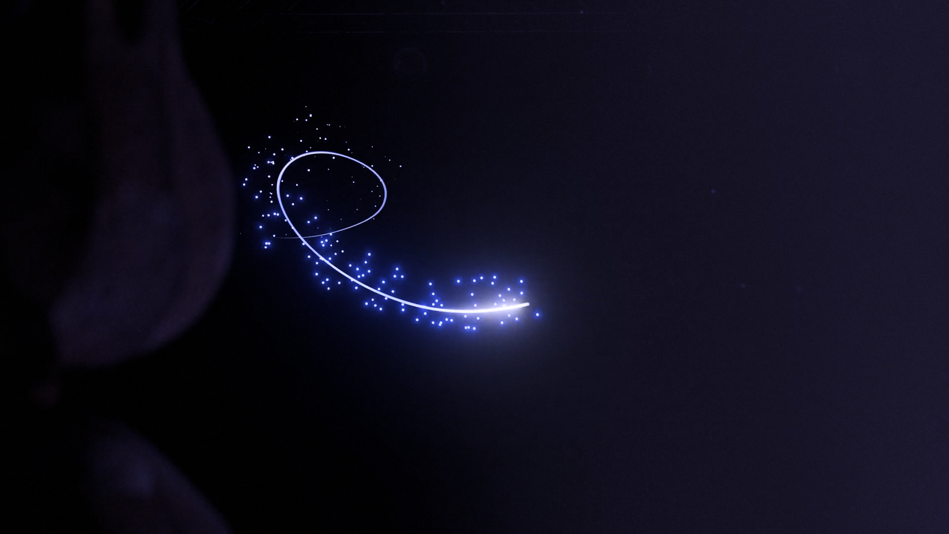 The string-like particles lead her forward, contrasting the actual string surrounding her on the floorboards. While watching the film, you'll also realize that the particles represent her flow-state and love for dance as an art.