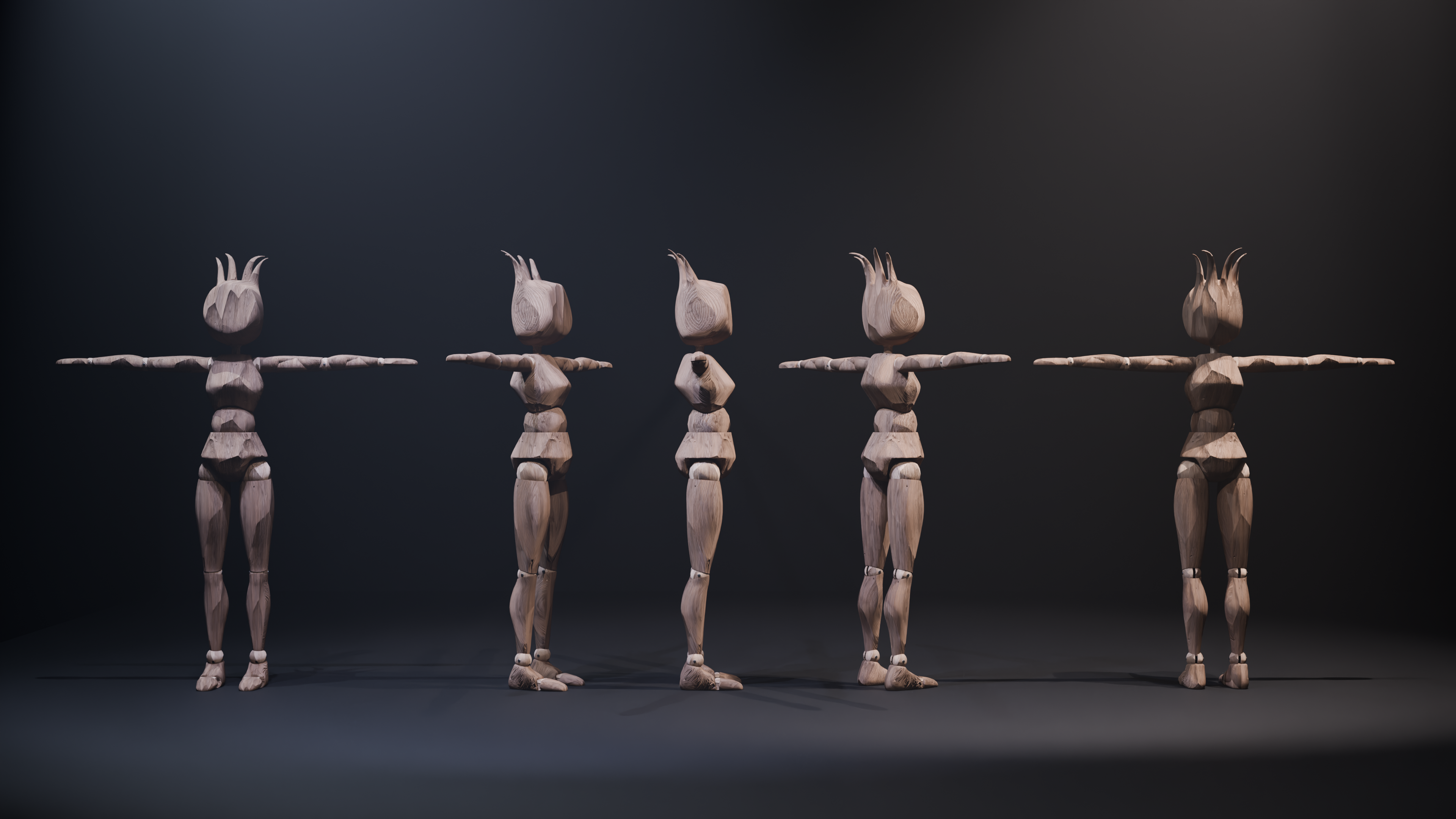 I was in charge of designing our protagonist who, despite being formally unnamed, was referred to as "Mary Onette" throughout production. She is hand-carved, elegant but janky.